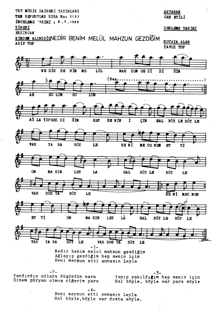 Nedir benim melül mahzun gezdiğim (Rep.No: 3192)