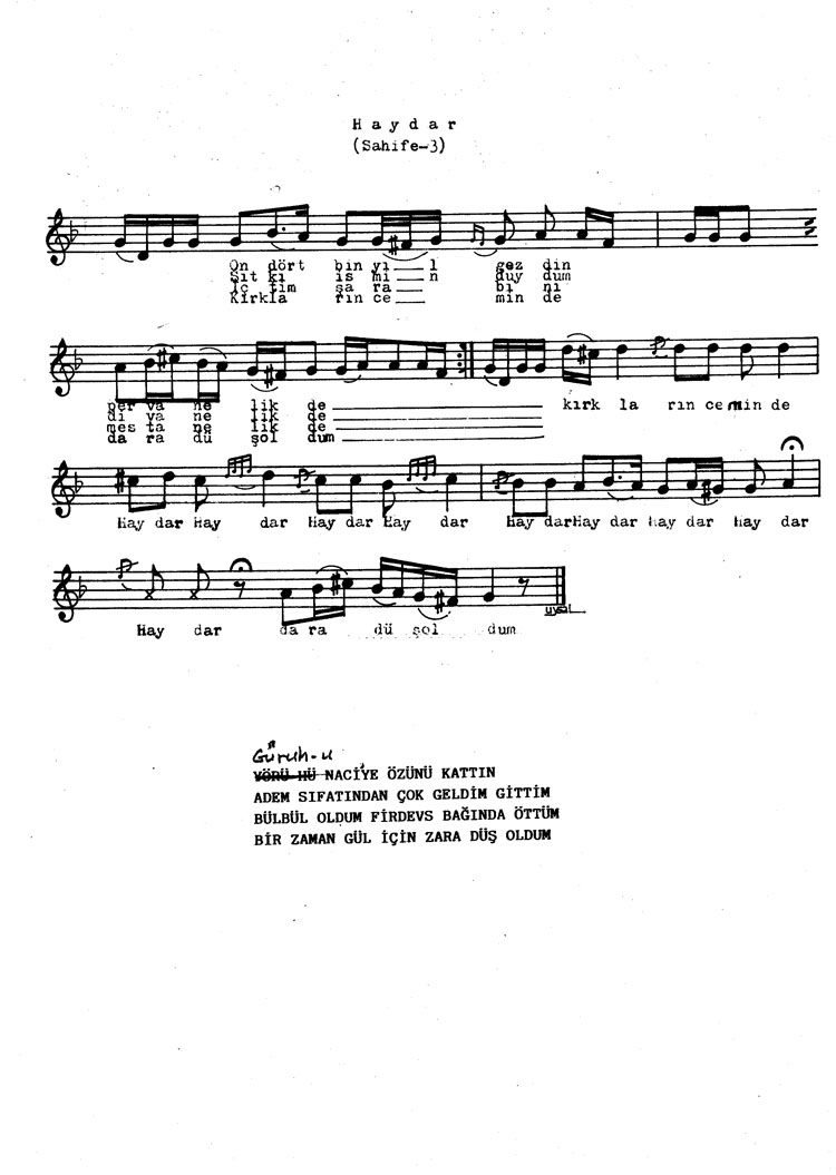 Bu türkünün notasında, sözlerinde veya örnek icrasında bir eksiklik yahut yanlışlık tespit ederseniz, e-mail ile veya WhatsApp hattından bildirim yaparak katkıda bulunabilirsiniz.