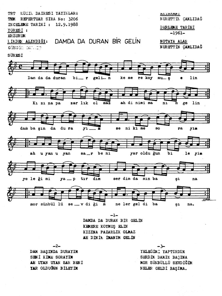 Bu türkünün notasında, sözlerinde veya örnek icrasında bir eksiklik yahut yanlışlık tespit ederseniz, e-mail ile veya WhatsApp hattından bildirim yaparak katkıda bulunabilirsiniz.