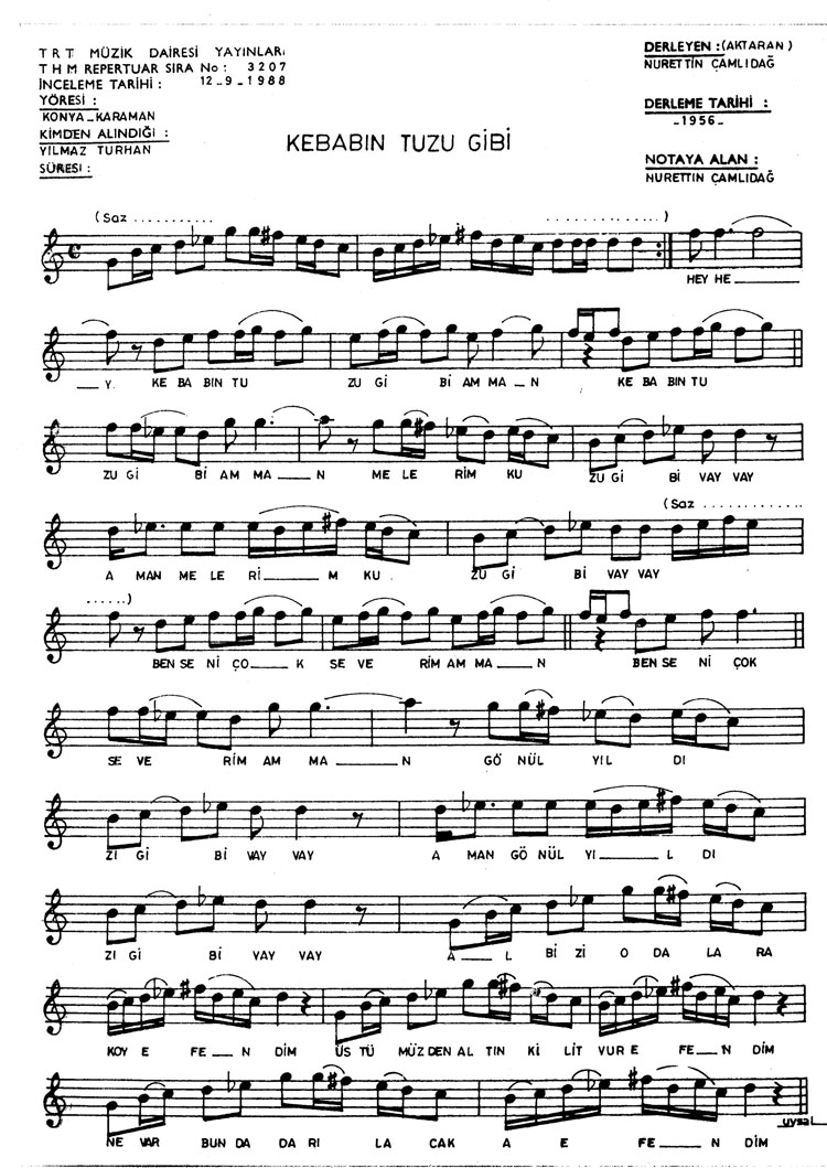 Bu türkünün notasında, sözlerinde veya örnek icrasında bir eksiklik yahut yanlışlık tespit ederseniz, e-mail ile veya WhatsApp hattından bildirim yaparak katkıda bulunabilirsiniz.