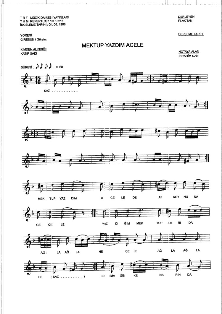 Bu türkünün notasında, sözlerinde veya örnek icrasında bir eksiklik yahut yanlışlık tespit ederseniz, e-mail ile veya WhatsApp hattından bildirim yaparak katkıda bulunabilirsiniz.