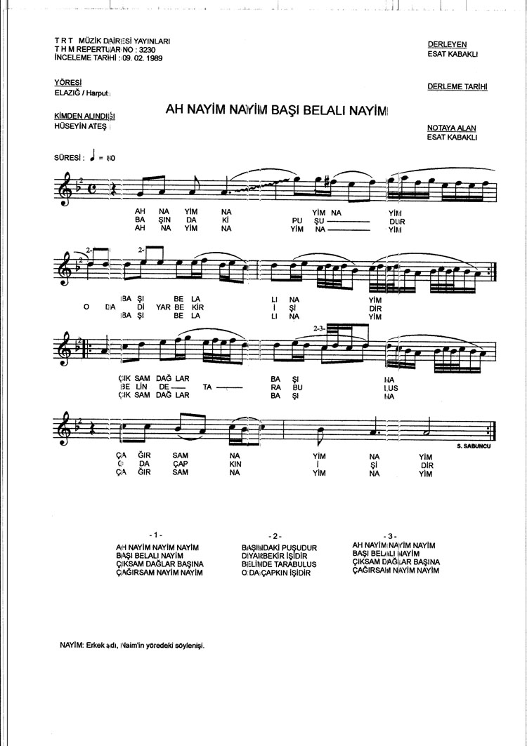 Ah nayim nayim başı belalı nayim (Rep.No: 3230)