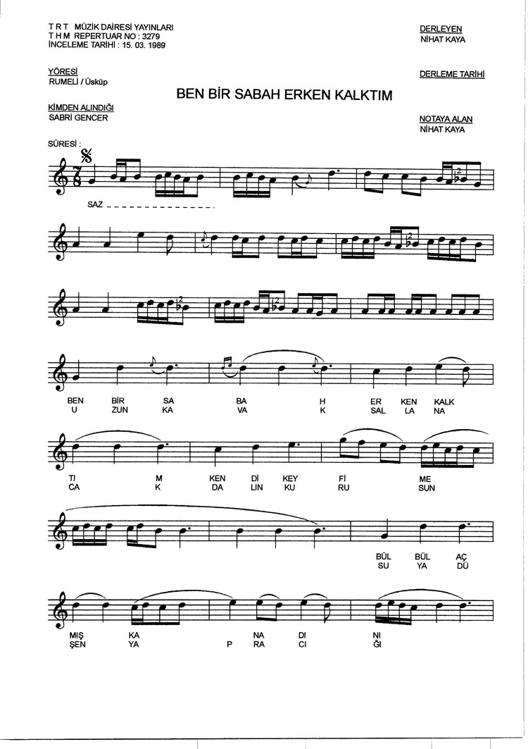 Ben bir sabah erken kalktım (Rep.No: 3279)