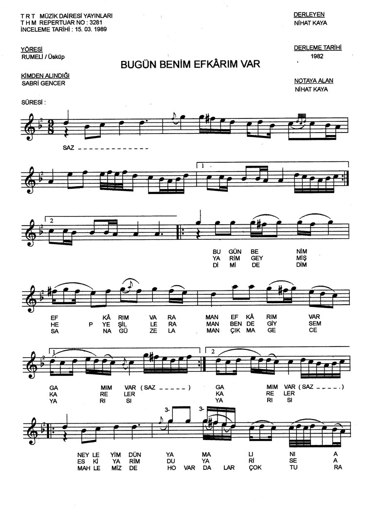 Bu türkünün notasında, sözlerinde veya örnek icrasında bir eksiklik yahut yanlışlık tespit ederseniz, e-mail ile veya WhatsApp hattından bildirim yaparak katkıda bulunabilirsiniz.