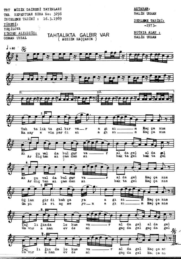 Bu türkünün notasında, sözlerinde veya örnek icrasında bir eksiklik yahut yanlışlık tespit ederseniz, e-mail ile veya WhatsApp hattından bildirim yaparak katkıda bulunabilirsiniz.
