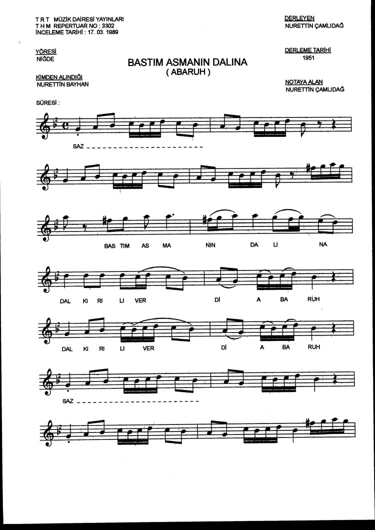 Bu türkünün notasında, sözlerinde veya örnek icrasında bir eksiklik yahut yanlışlık tespit ederseniz, e-mail ile veya WhatsApp hattından bildirim yaparak katkıda bulunabilirsiniz.