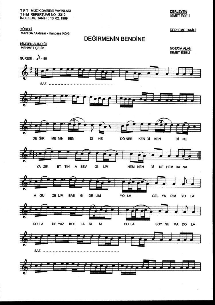 Bu türkünün notasında, sözlerinde veya örnek icrasında bir eksiklik yahut yanlışlık tespit ederseniz, e-mail ile veya WhatsApp hattından bildirim yaparak katkıda bulunabilirsiniz.