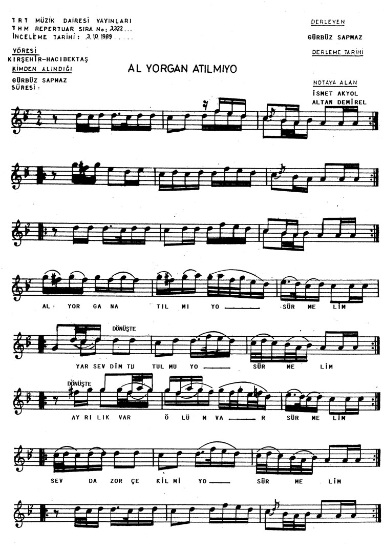 Bu türkünün notasında, sözlerinde veya örnek icrasında bir eksiklik yahut yanlışlık tespit ederseniz, e-mail ile veya WhatsApp hattından bildirim yaparak katkıda bulunabilirsiniz.