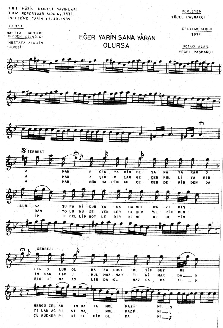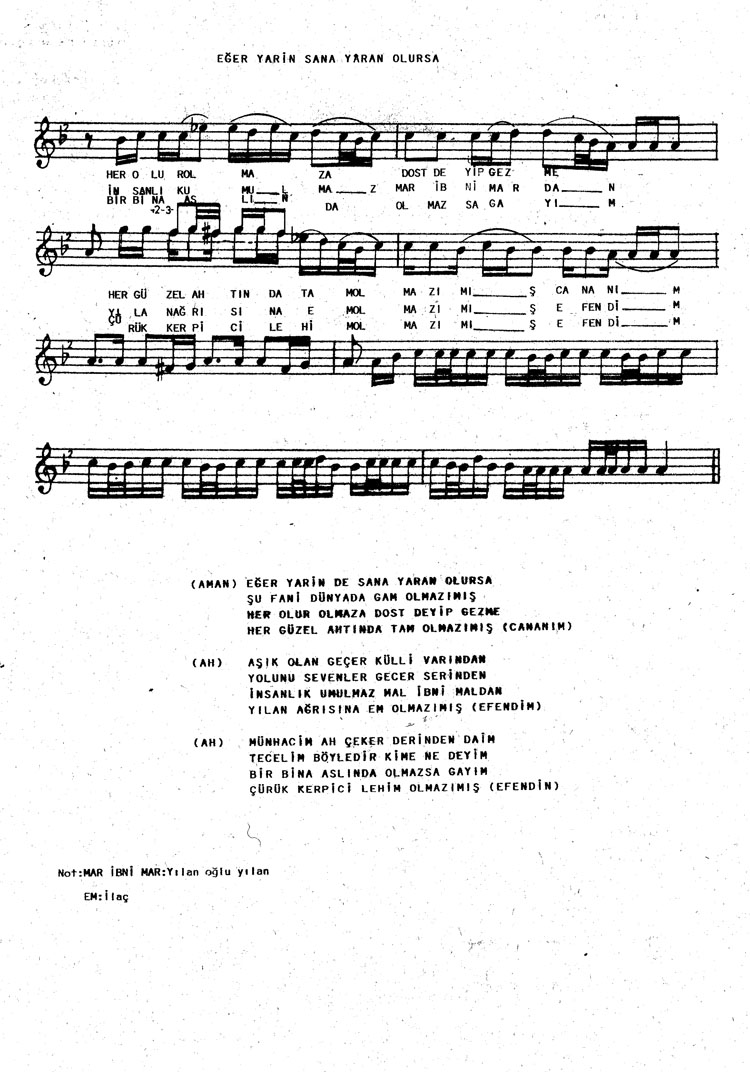Bu türkünün notasında, sözlerinde veya örnek icrasında bir eksiklik yahut yanlışlık tespit ederseniz, e-mail ile veya WhatsApp hattından bildirim yaparak katkıda bulunabilirsiniz.