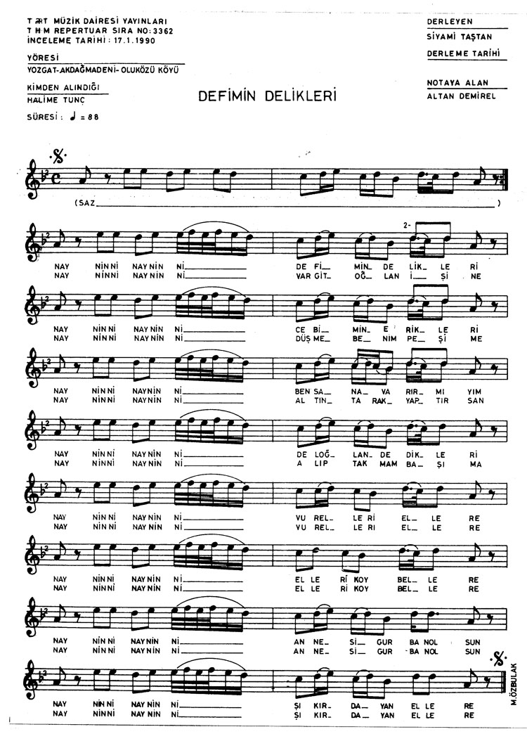Bu türkünün notasında, sözlerinde veya örnek icrasında bir eksiklik yahut yanlışlık tespit ederseniz, e-mail ile veya WhatsApp hattından bildirim yaparak katkıda bulunabilirsiniz.