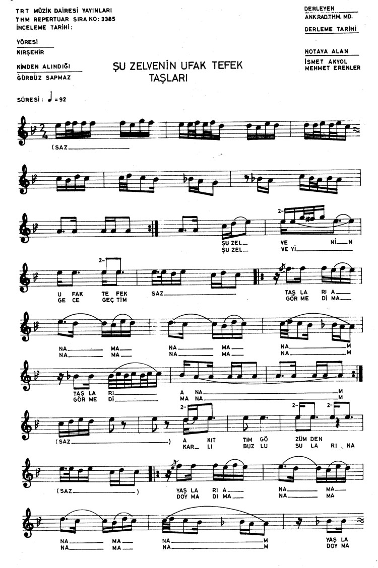 Şu zelvenin ufak tefek taşları (Rep.No: 3385)