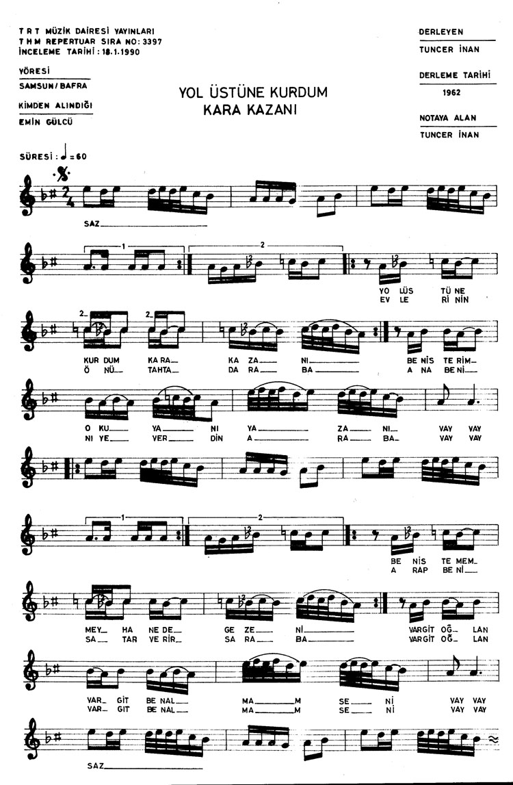 Yol üstüne kurdum kara kazanı (Rep.No: 3397)