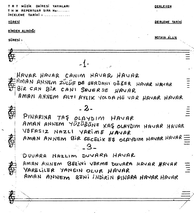 Bu türkünün notasında, sözlerinde veya örnek icrasında bir eksiklik yahut yanlışlık tespit ederseniz, e-mail ile veya WhatsApp hattından bildirim yaparak katkıda bulunabilirsiniz.
