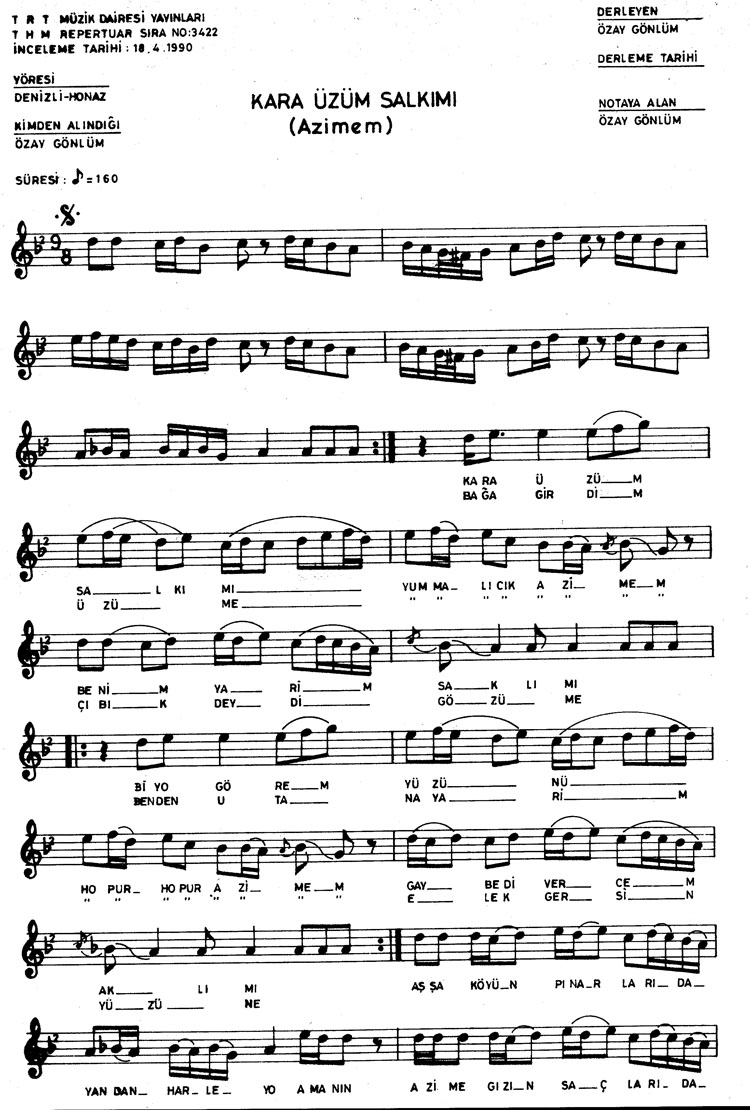 Bu türkünün notasında, sözlerinde veya örnek icrasında bir eksiklik yahut yanlışlık tespit ederseniz, e-mail ile veya WhatsApp hattından bildirim yaparak katkıda bulunabilirsiniz.