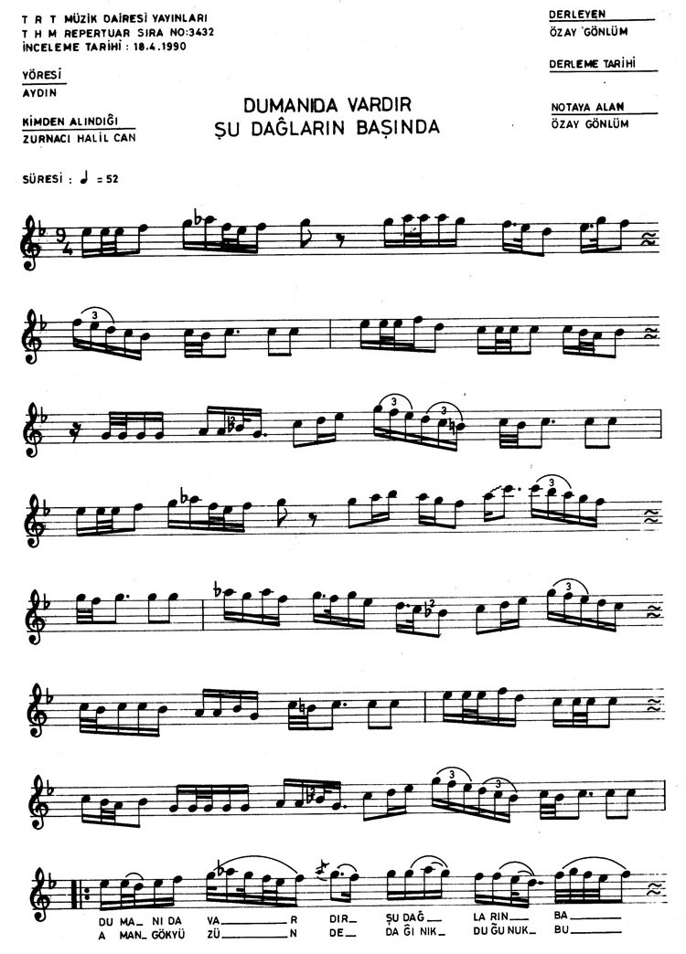 Dumanı da vardır şu dağların başında (Rep.No: 3432)