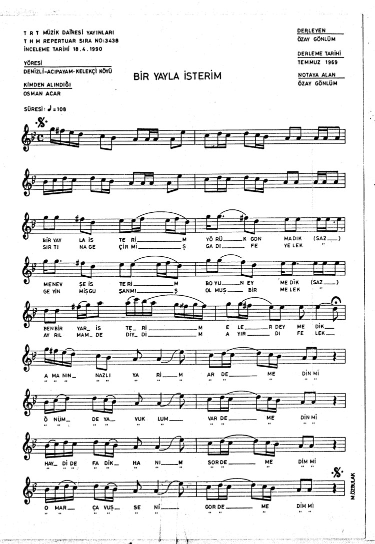 Bir yayla isterim yörük gonmadık (Rep.No: 3438)