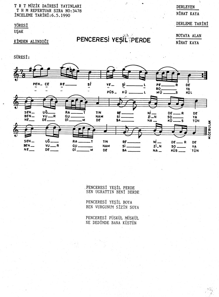 Bu türkünün notasında, sözlerinde veya örnek icrasında bir eksiklik yahut yanlışlık tespit ederseniz, e-mail ile veya WhatsApp hattından bildirim yaparak katkıda bulunabilirsiniz.