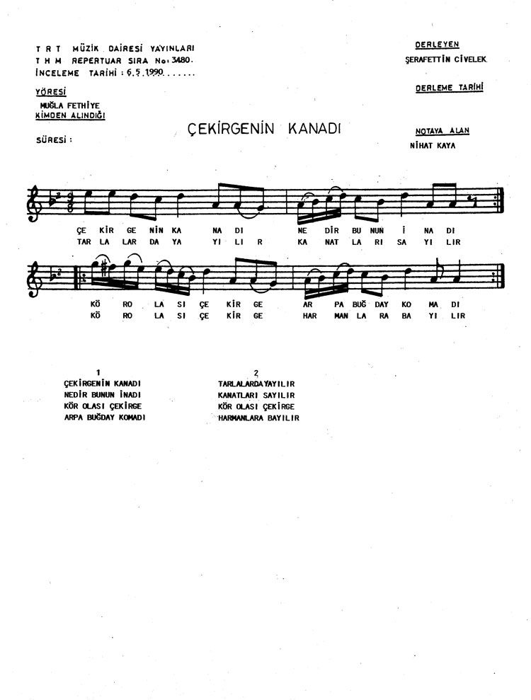 Bu türkünün notasında, sözlerinde veya örnek icrasında bir eksiklik yahut yanlışlık tespit ederseniz, e-mail ile veya WhatsApp hattından bildirim yaparak katkıda bulunabilirsiniz.