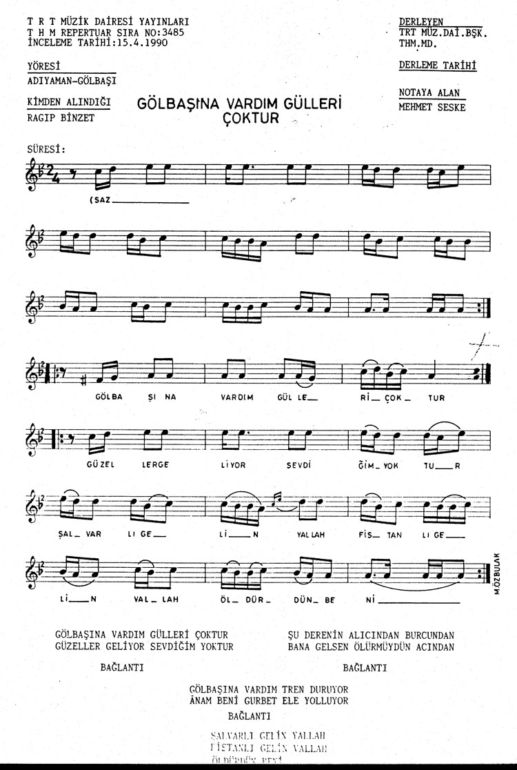 Gölbaşı´na vardım gülleri çoktur (Rep.No: 3485)