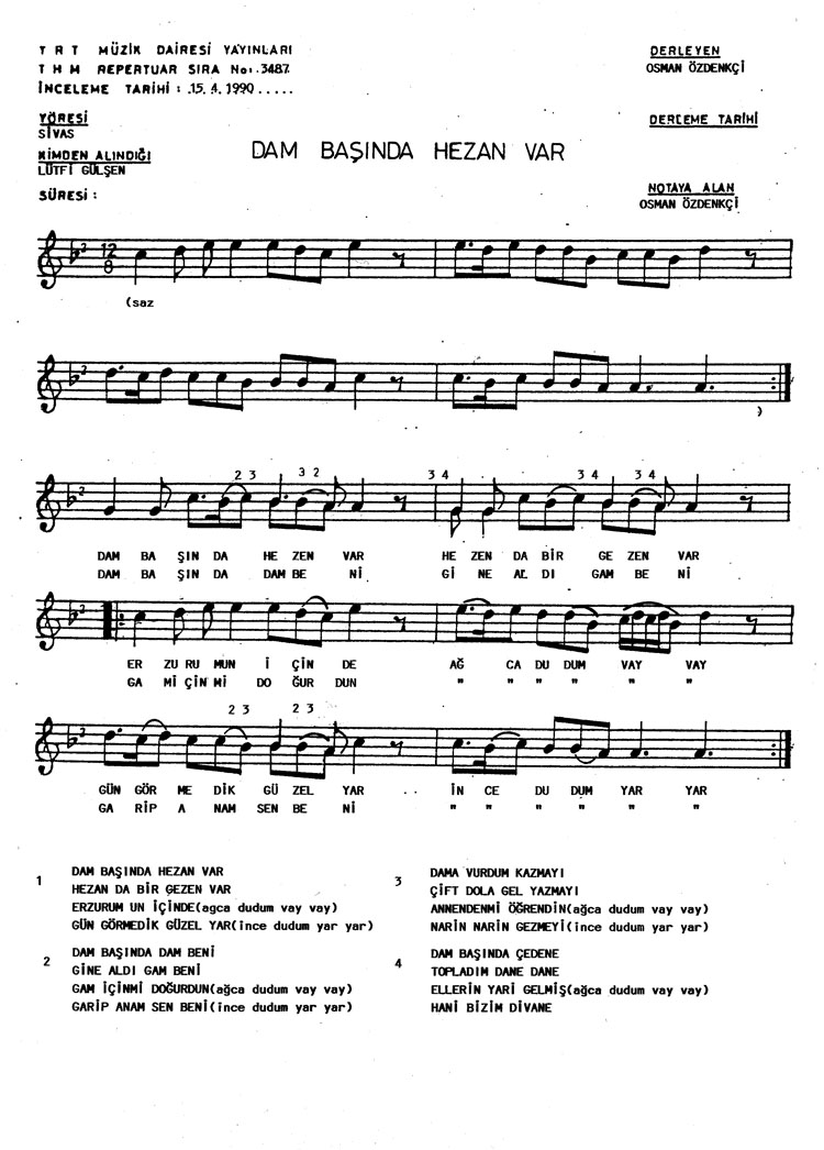 Bu türkünün notasında, sözlerinde veya örnek icrasında bir eksiklik yahut yanlışlık tespit ederseniz, e-mail ile veya WhatsApp hattından bildirim yaparak katkıda bulunabilirsiniz.