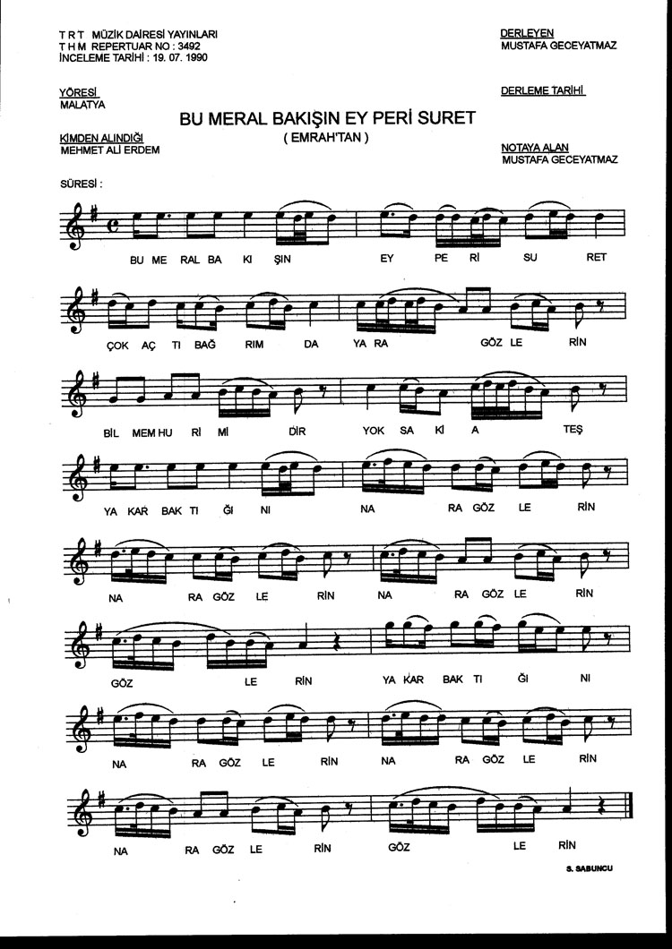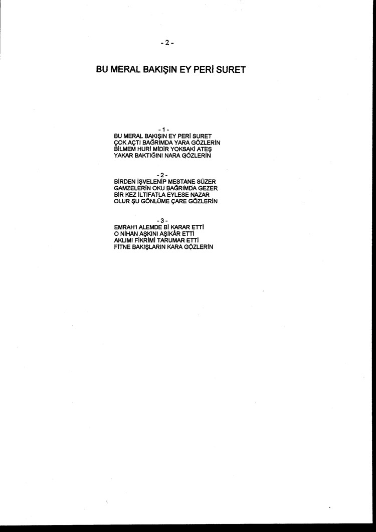 Bu meral bakışın ey peri suret (Rep.No: 3492)