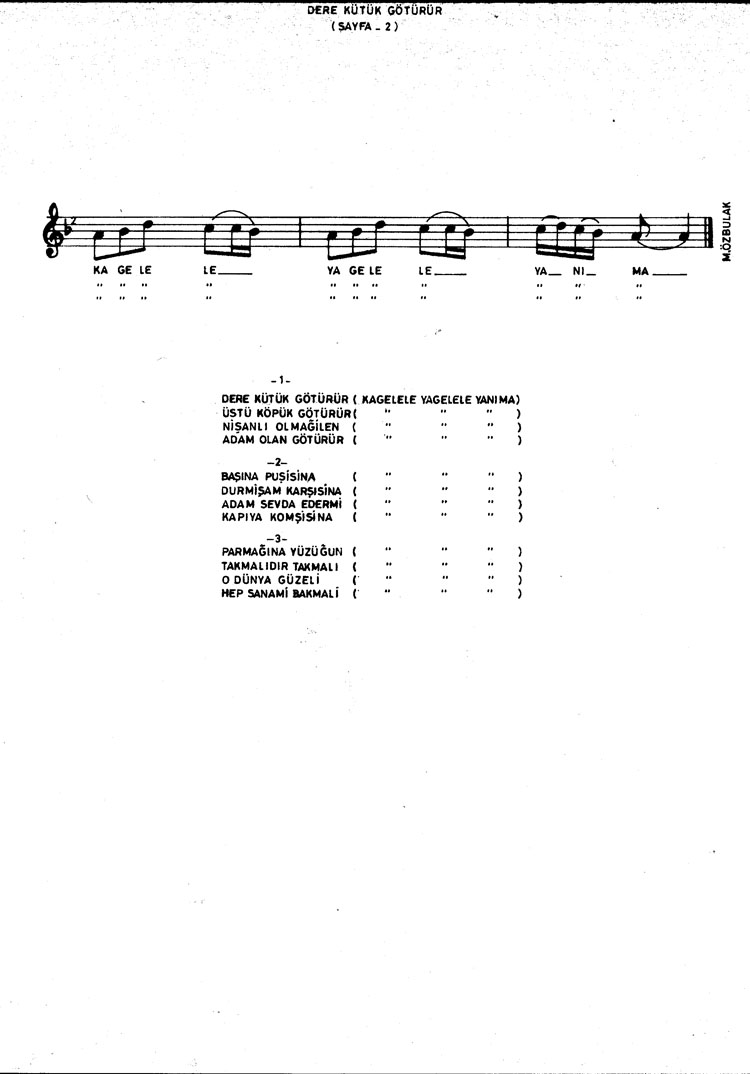 Bu türkünün notasında, sözlerinde veya örnek icrasında bir eksiklik yahut yanlışlık tespit ederseniz, e-mail ile veya WhatsApp hattından bildirim yaparak katkıda bulunabilirsiniz.