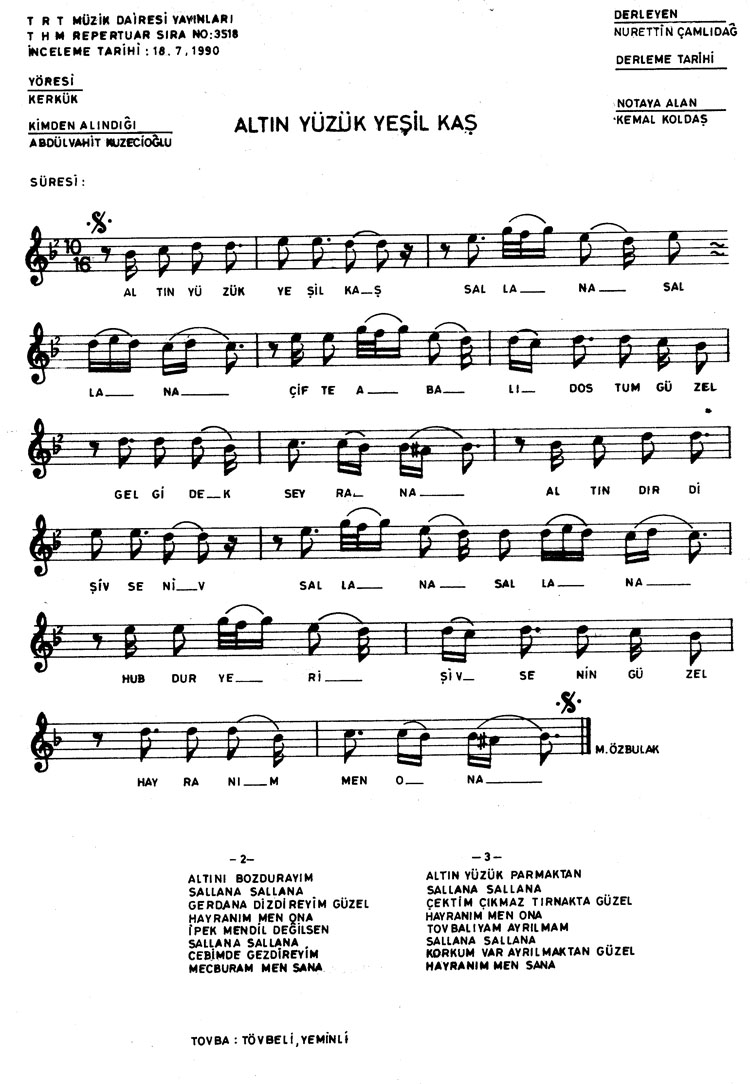 Bu türkünün notasında, sözlerinde veya örnek icrasında bir eksiklik yahut yanlışlık tespit ederseniz, e-mail ile veya WhatsApp hattından bildirim yaparak katkıda bulunabilirsiniz.