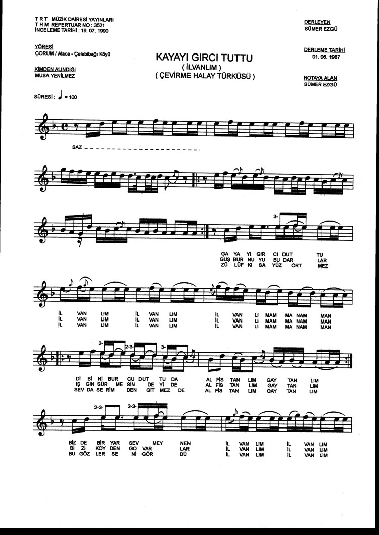 Bu türkünün notasında, sözlerinde veya örnek icrasında bir eksiklik yahut yanlışlık tespit ederseniz, e-mail ile veya WhatsApp hattından bildirim yaparak katkıda bulunabilirsiniz.