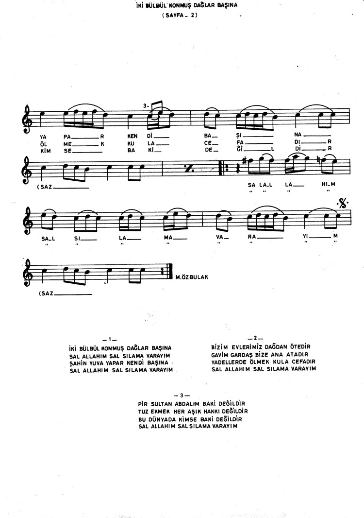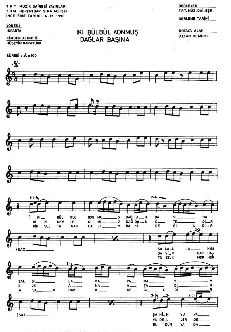 İki bülbül konmuş dağlar başına (Rep.No: 3561)