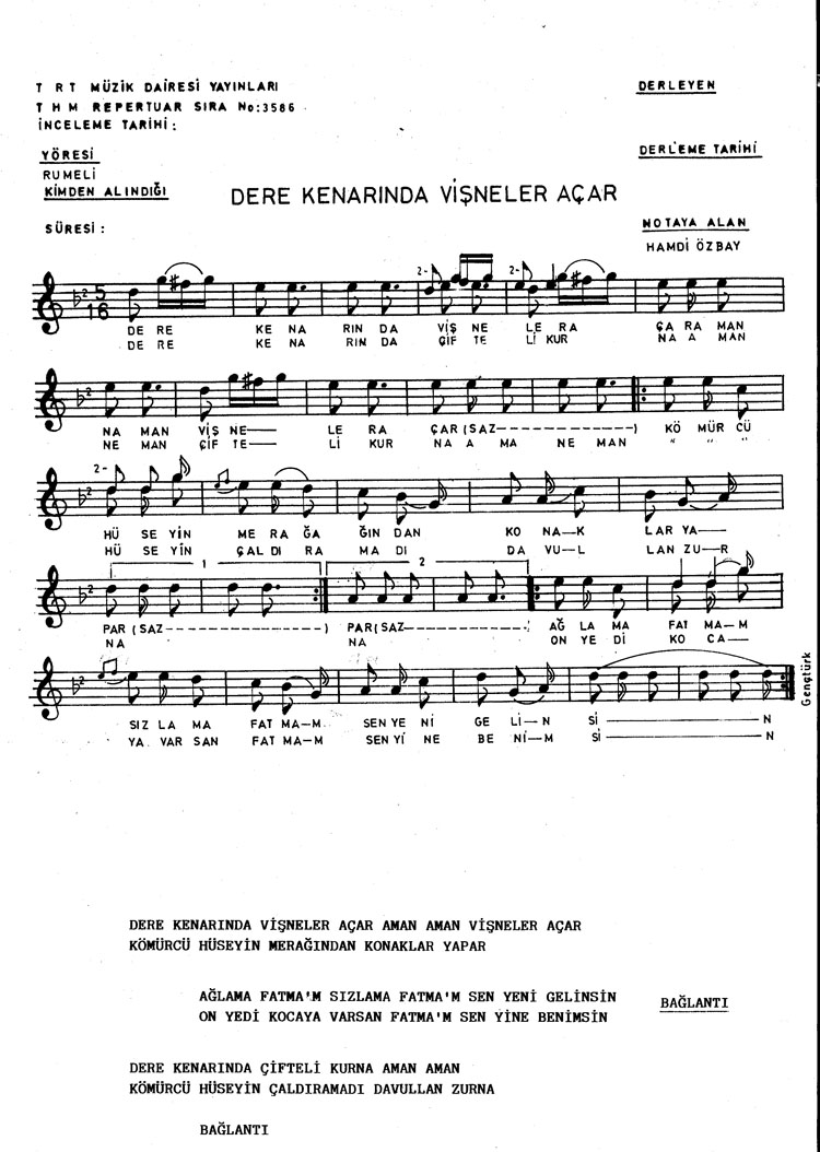 Bu türkünün notasında, sözlerinde veya örnek icrasında bir eksiklik yahut yanlışlık tespit ederseniz, e-mail ile veya WhatsApp hattından bildirim yaparak katkıda bulunabilirsiniz.