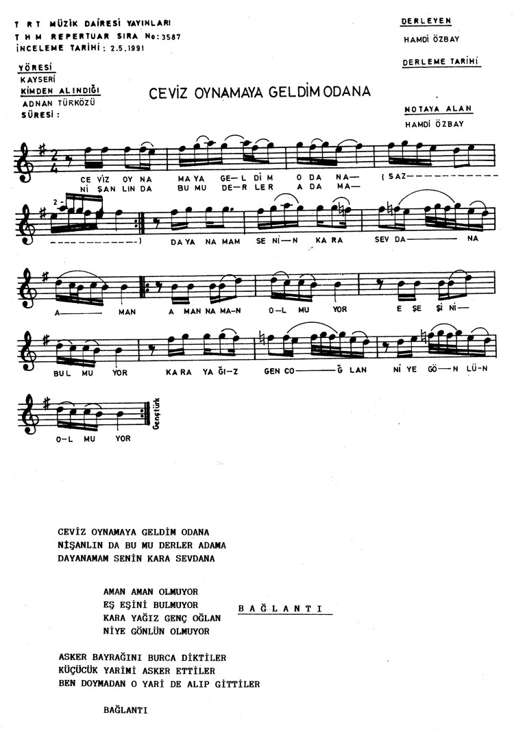Bu türkünün notasında, sözlerinde veya örnek icrasında bir eksiklik yahut yanlışlık tespit ederseniz, e-mail ile veya WhatsApp hattından bildirim yaparak katkıda bulunabilirsiniz.