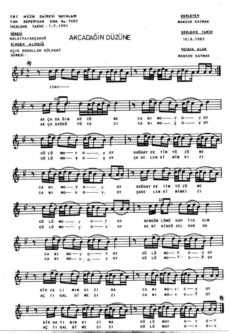 Bu türkünün notasında, sözlerinde veya örnek icrasında bir eksiklik yahut yanlışlık tespit ederseniz, e-mail ile veya WhatsApp hattından bildirim yaparak katkıda bulunabilirsiniz.