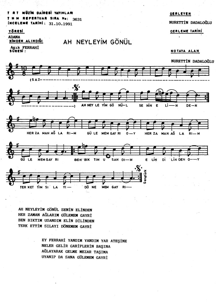 Ah neyleyim gönül senin elinden (Rep.No: 3631)