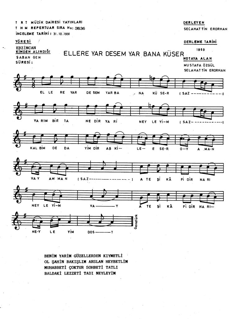 Ellere yar desem yar bana küser (Rep.No: 3636)