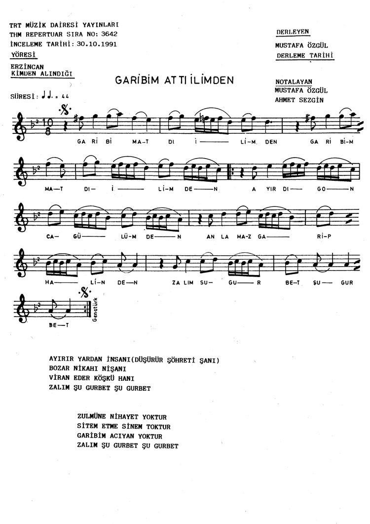 Garibim attı elimden (Rep.No: 3642)