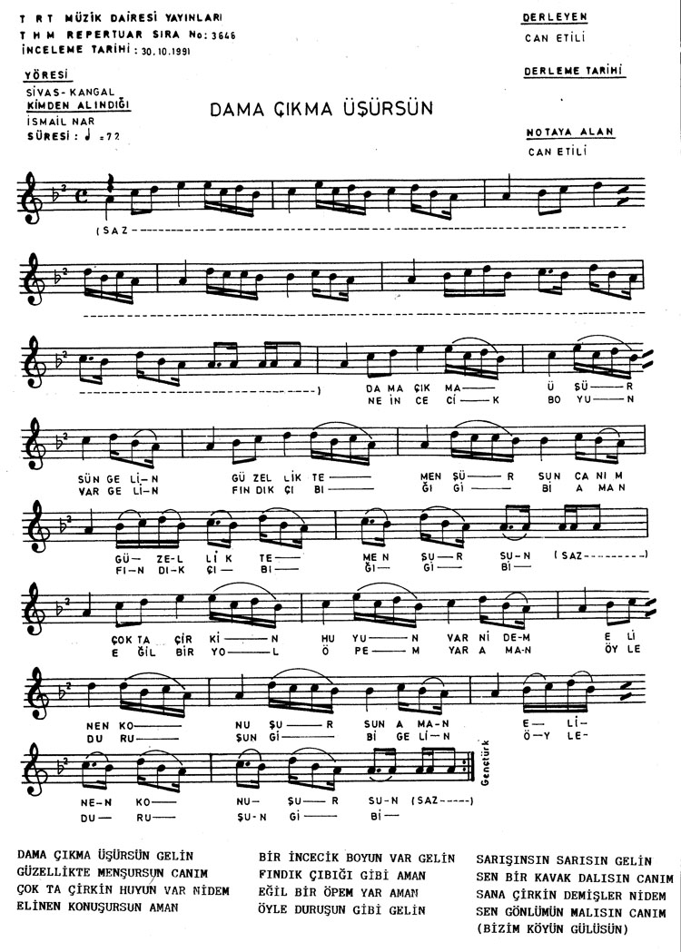 Bu türkünün notasında, sözlerinde veya örnek icrasında bir eksiklik yahut yanlışlık tespit ederseniz, e-mail ile veya WhatsApp hattından bildirim yaparak katkıda bulunabilirsiniz.
