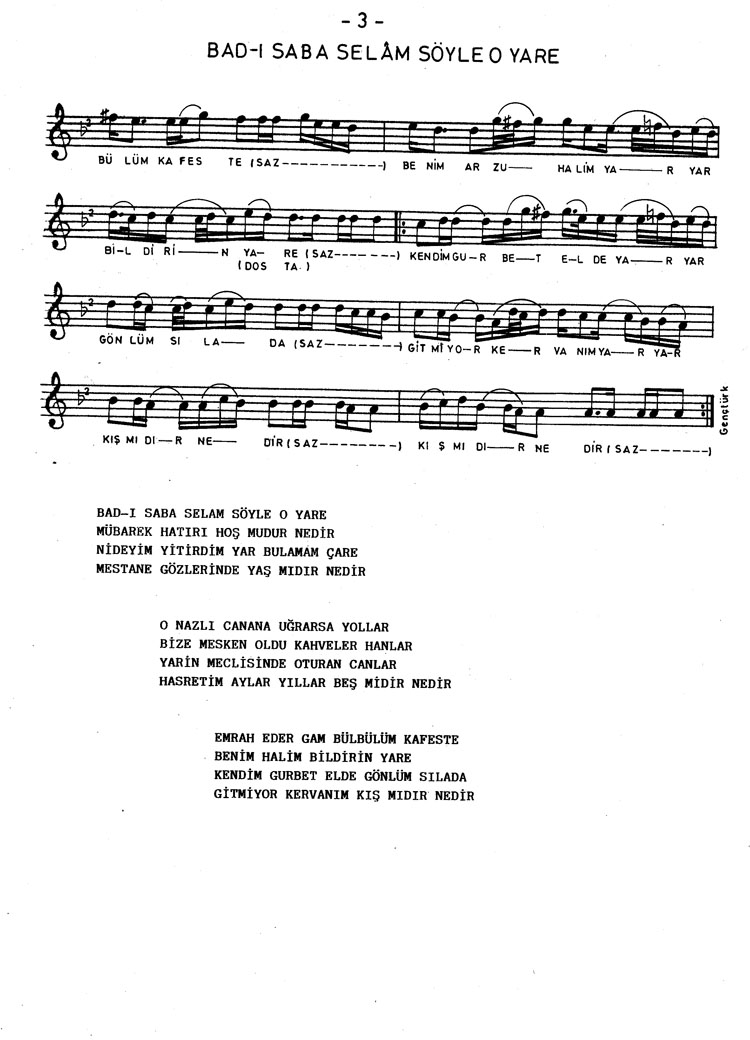 Bad-ı saba selam söyle o yare (Rep.No: 3660)