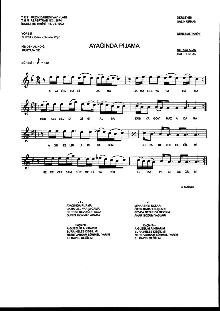 Bu türkünün notasında, sözlerinde veya örnek icrasında bir eksiklik yahut yanlışlık tespit ederseniz, e-mail ile veya WhatsApp hattından bildirim yaparak katkıda bulunabilirsiniz.