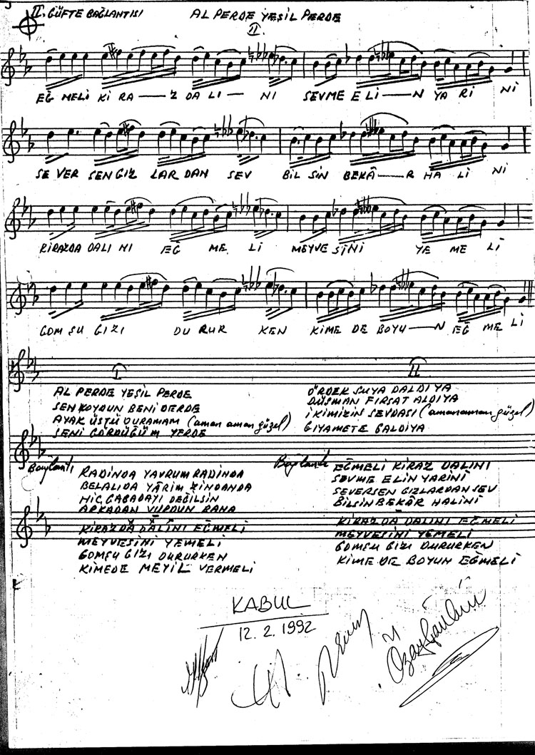 Bu türkünün notasında, sözlerinde veya örnek icrasında bir eksiklik yahut yanlışlık tespit ederseniz, e-mail ile veya WhatsApp hattından bildirim yaparak katkıda bulunabilirsiniz.