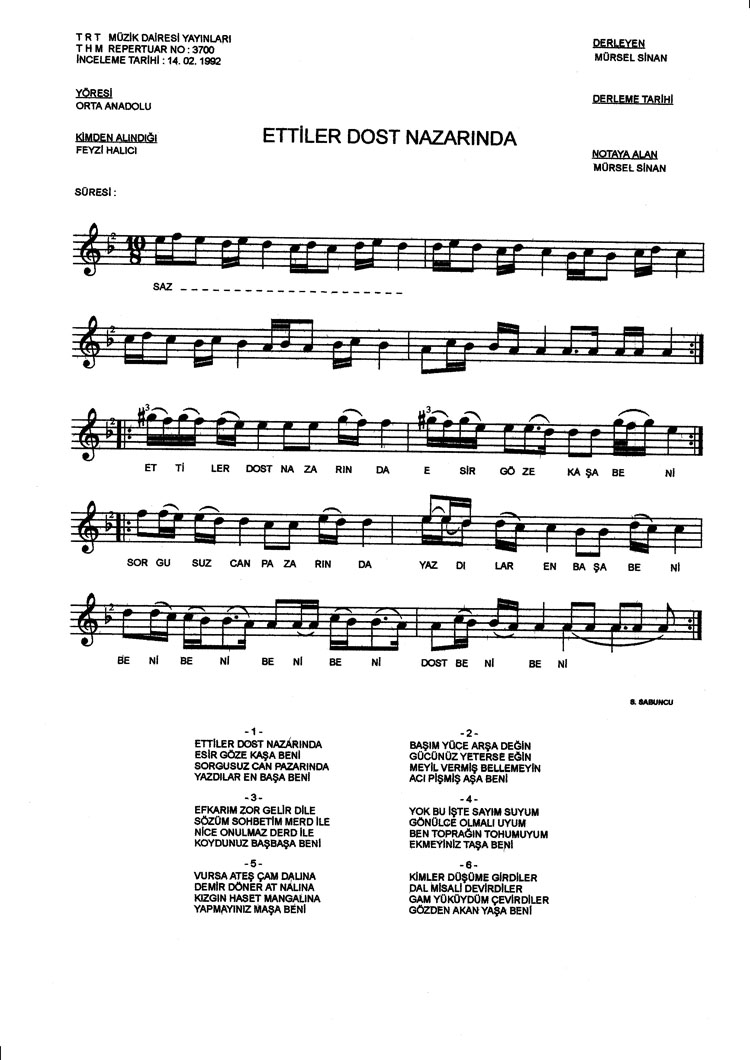 Bu türkünün notasında, sözlerinde veya örnek icrasında bir eksiklik yahut yanlışlık tespit ederseniz, e-mail ile veya WhatsApp hattından bildirim yaparak katkıda bulunabilirsiniz.