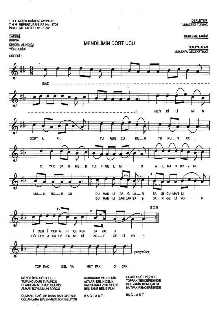 Bu türkünün notasında, sözlerinde veya örnek icrasında bir eksiklik yahut yanlışlık tespit ederseniz, e-mail ile veya WhatsApp hattından bildirim yaparak katkıda bulunabilirsiniz.