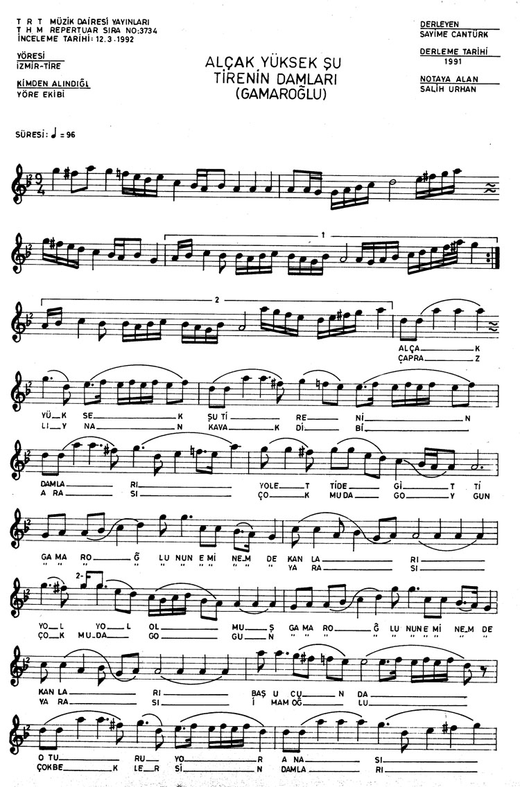 Alçak yüksek şu Tire´nin damları (Rep.No: 3734)