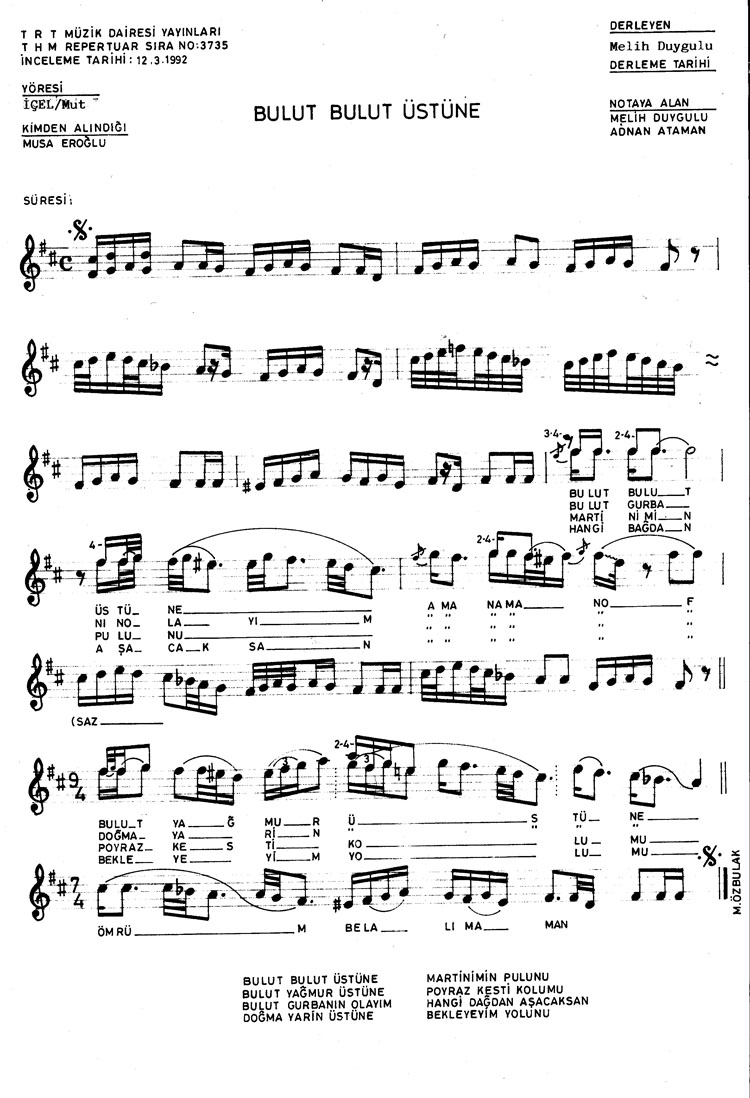 Bu türkünün notasında, sözlerinde veya örnek icrasında bir eksiklik yahut yanlışlık tespit ederseniz, e-mail ile veya WhatsApp hattından bildirim yaparak katkıda bulunabilirsiniz.