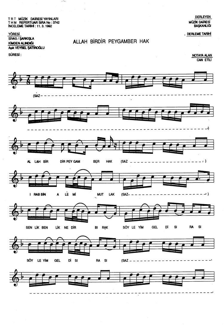 Bu türkünün notasında, sözlerinde veya örnek icrasında bir eksiklik yahut yanlışlık tespit ederseniz, e-mail ile veya WhatsApp hattından bildirim yaparak katkıda bulunabilirsiniz.