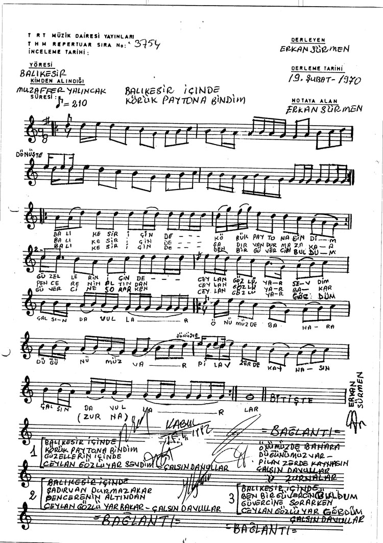 Bu türkünün notasında, sözlerinde veya örnek icrasında bir eksiklik yahut yanlışlık tespit ederseniz, e-mail ile veya WhatsApp hattından bildirim yaparak katkıda bulunabilirsiniz.
