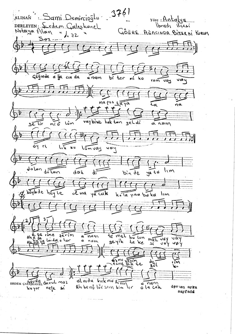 Bu türkünün notasında, sözlerinde veya örnek icrasında bir eksiklik yahut yanlışlık tespit ederseniz, e-mail ile veya WhatsApp hattından bildirim yaparak katkıda bulunabilirsiniz.