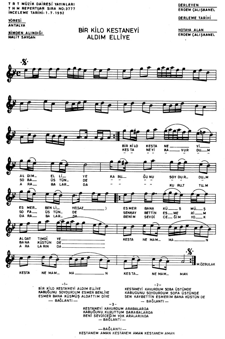Bir kilo kestaneyi aldım elliye (Rep.No: 3777)