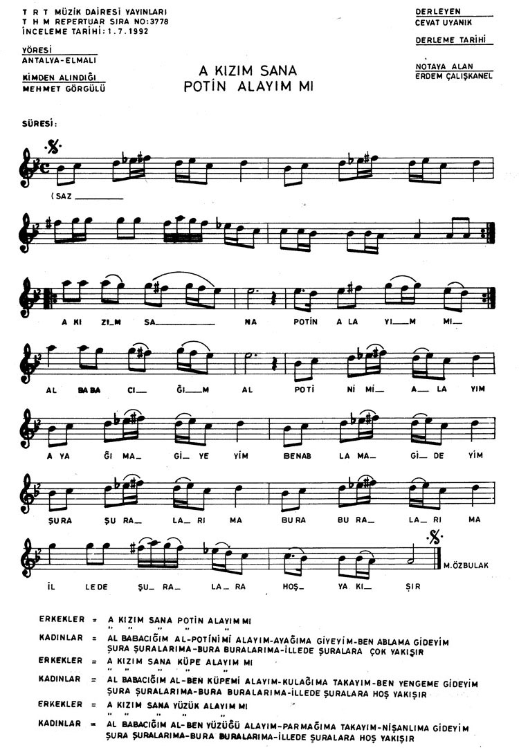 Bu türkünün notasında, sözlerinde veya örnek icrasında bir eksiklik yahut yanlışlık tespit ederseniz, e-mail ile veya WhatsApp hattından bildirim yaparak katkıda bulunabilirsiniz.