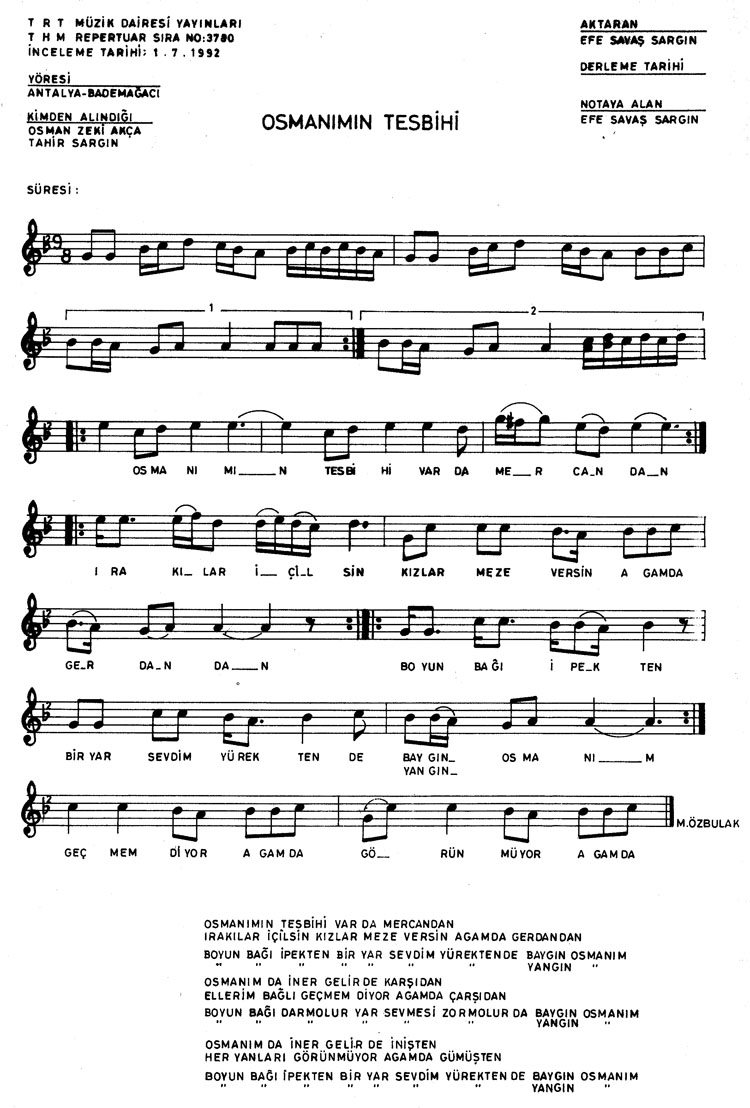 Osman´ımın tesbihi var da mercandan (Rep.No: 3780)