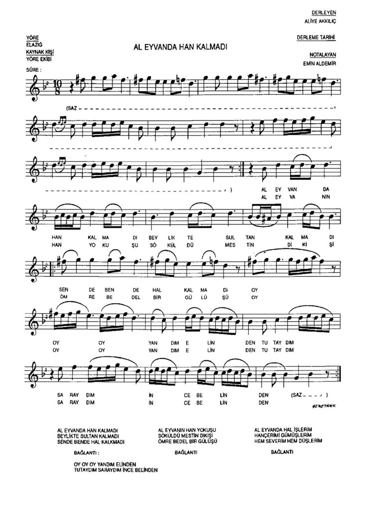 Bu türkünün notasında, sözlerinde veya örnek icrasında bir eksiklik yahut yanlışlık tespit ederseniz, e-mail ile veya WhatsApp hattından bildirim yaparak katkıda bulunabilirsiniz.